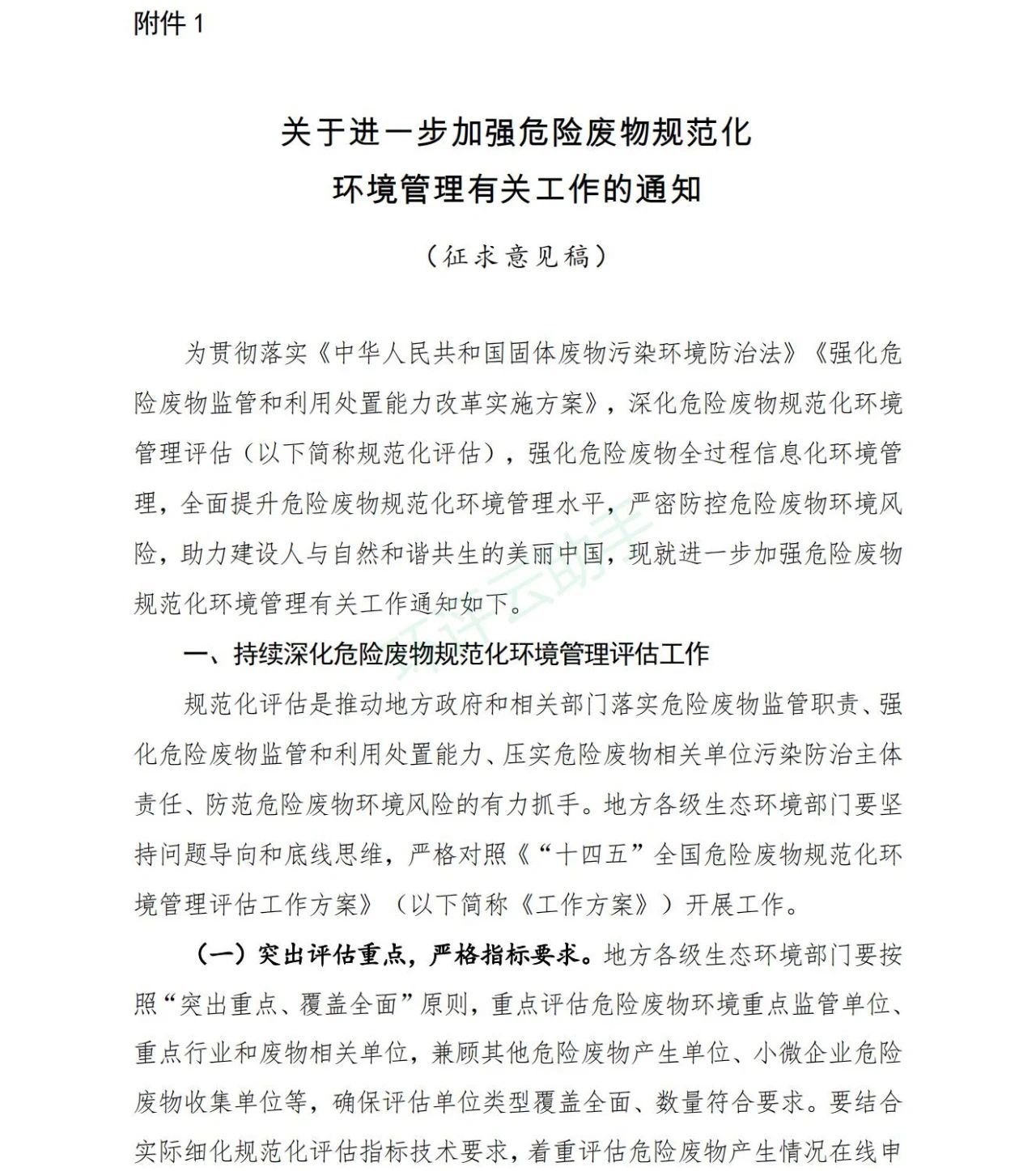 1.關(guān)于進(jìn)一步加強(qiáng)危險廢物規(guī)范化環(huán)境管理有關(guān)工作的通知(征求意見稿)