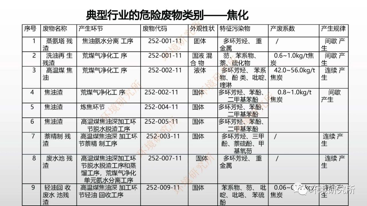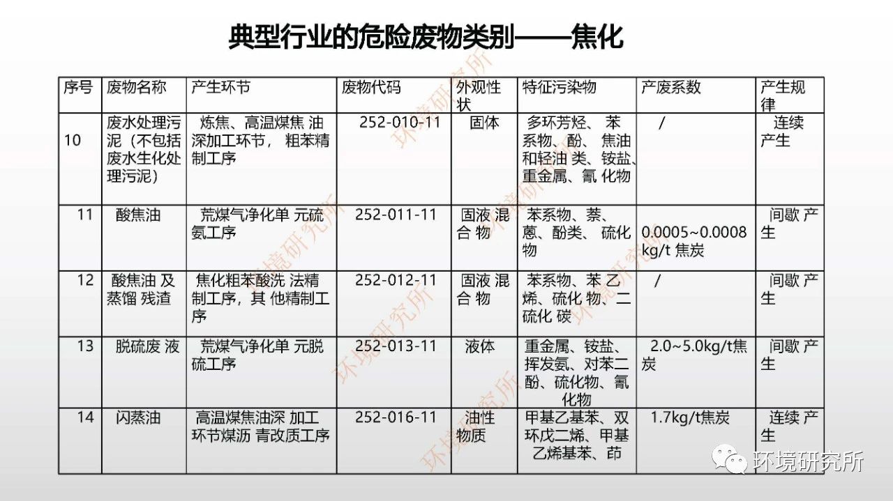 在此基礎上,對機動車維修行業(yè)、焦化行業(yè)、致密氣開發(fā)等行業(yè)危險廢物種類、產(chǎn)生環(huán)節(jié)、危廢類別、產(chǎn)廢系數(shù)等進行了整理,為相關企業(yè)危廢管理提供依據(jù)。